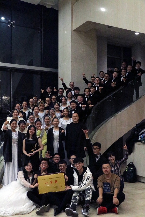 1111日,由校大学生文化素质教育基地主办的第九届大学生合唱与重唱艺术比赛于启航剧场举行。来自各院系共计12支合唱队伍参加本次比赛,最终,我院music code合唱团荣获唯一一等奖。