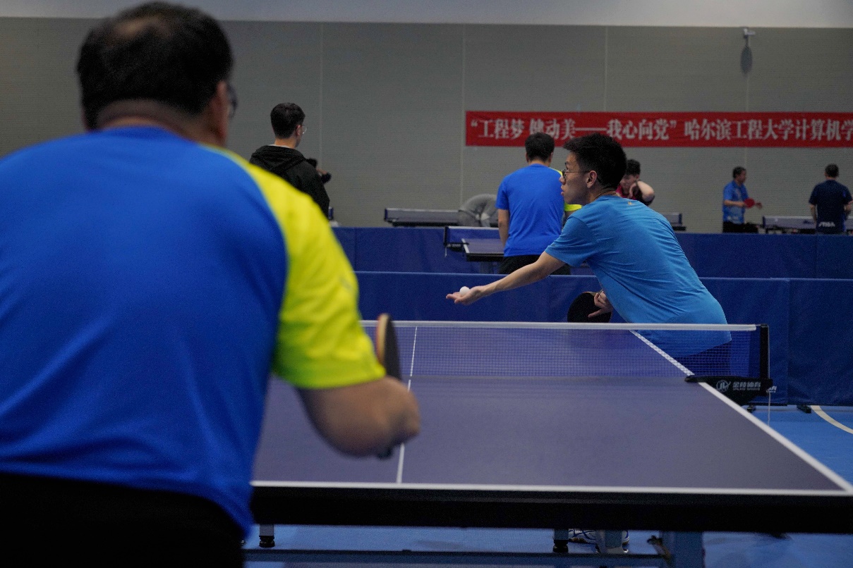 比赛中,运动员们团结协作、融洽配合,认真专注、挥汗如雨,精彩场面迭出,直拍、横拍、扣球、旋转球、弧线球精彩频现。经过两个多小时的比赛角逐,在第一轮中,教师一队和二队惜败于学生队,教师女队则完胜。在第二轮交换对手之后,双方阵营互有胜负。