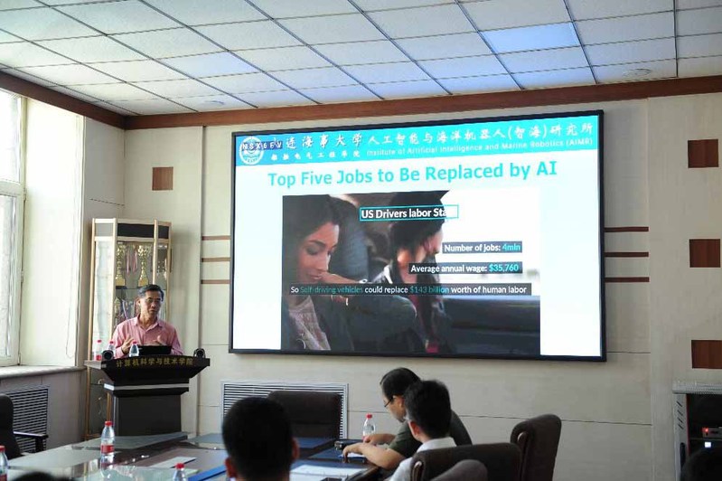本次报告的主题为“Artificial Intelligence: Latest Developments and Futuristic Trends”,余教授围绕人工智能的发展历史,在自动驾驶、船舶、医疗保健、家庭服务等领域的最新应用,人工智能未来的发展趋势及研究挑战等方面展开了学术报告。整场报告主题鲜明、逻辑严密、体系完整、生动有趣。