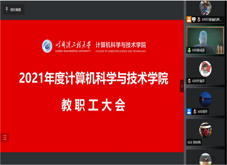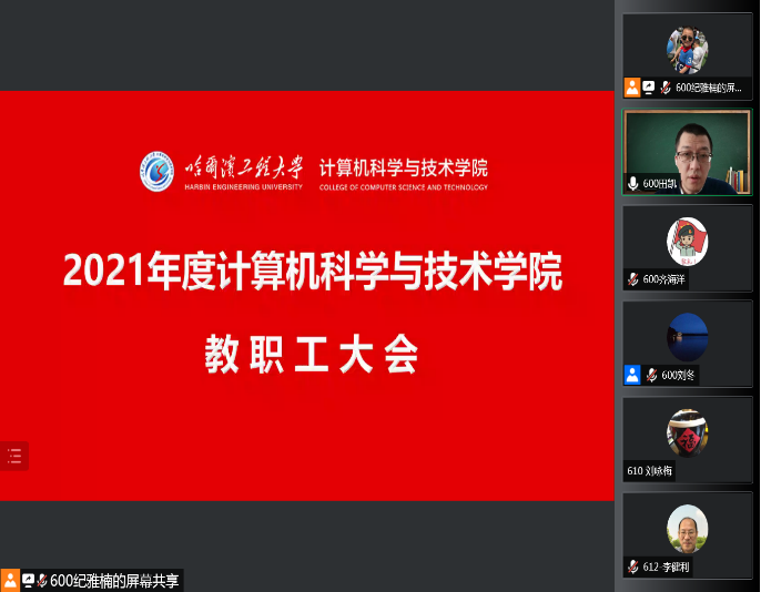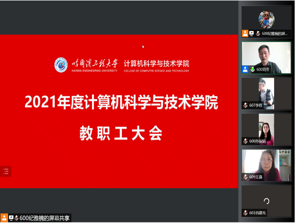 会议由学院党委书记刘冬同志主持召开,pg游戏电子模拟器院长蔡成涛,党委副书记刘正,副院长董宇欣、田凯、冯光升、王巍及全体教职工(包括合同二类、科研岗)参加会议,根据线上会议统计显示学院共有143位教工线上参会,占应参加会议职工总数的93.46%。