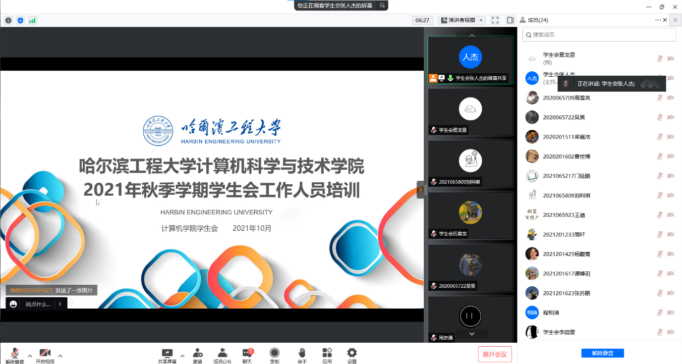 10月10日,为了响应国家号召,积极推进大学生骨干的培养工作,结合团结协作、不断创新的时代精神,pg游戏电子模拟器学生会开展工作人员春季培训。本次会议通过腾讯会议召开,主讲人:学生会主席张人杰。