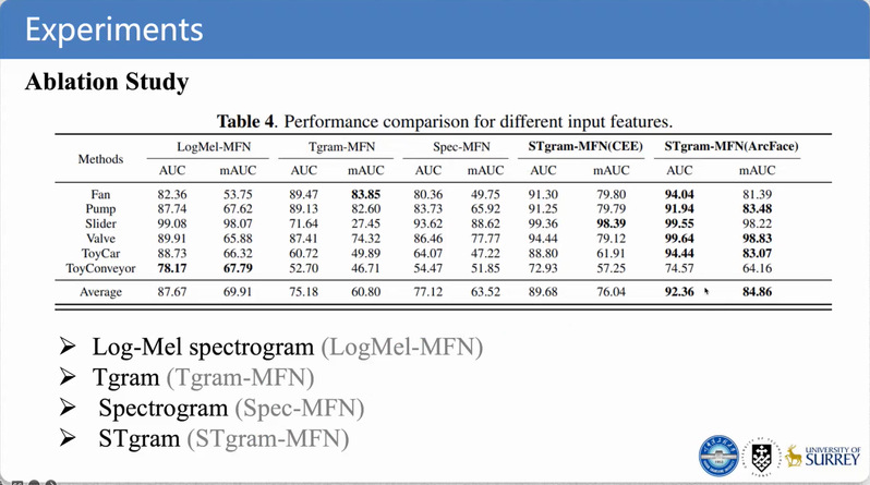 该论文入选音频信号处理领域顶级国际会议ICASSP 2022,是我校pg游戏电子模拟器嵌入式与物联网团队智能信号处理团队(Group of Intelligent Signal Process, GISP)与悉尼科技大学“音频声学与振动中心”及萨里大学“视觉语音信号处理中心”最新合作研究成果,提出了一种基于时频融合的自监督分类方法,通过时频域信息的融合互补,极大地提升了工业设备异常检测的性能和稳定性。
