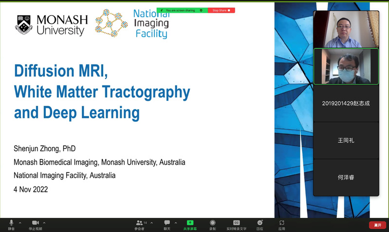 2022年11月4日,pg游戏电子模拟器举行了智汇论坛2022年第六期(总第十期)活动。本次活动邀请澳大利亚莫纳什大学医学影像中心研究员,澳大利亚国家影像中心研究员钟申俊以“脑部白质纤维束成像技术和深度学习的应用 ”为题作专题讲座。