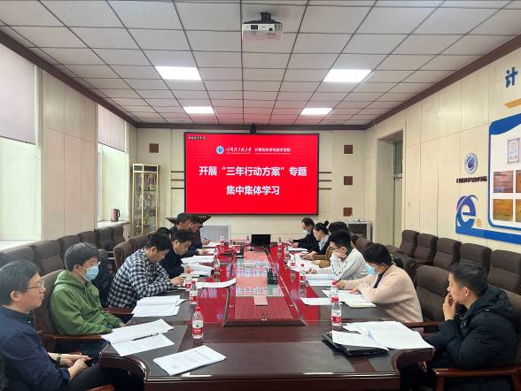 学院党委书记刘冬宣读关于开展“三年行动方案”专题学习的通知,并传达学习要求。他指出,五个“行动方案”是未来三年发展的导向图,是学院现阶段的重点核心工作。本次活动既是一次集体学习研讨,也是一次集中调度、动员部署会。各基层学术组织负责人和党支部书记要高度重视,先学一步,围绕五个“三年行动方案”找差距、找方法,并制定落实计划,带领教研中心教职工开展集中集体学习。要深入思考如何发展科技第一生产力、培养人才第一资源、创新增强第一动力。