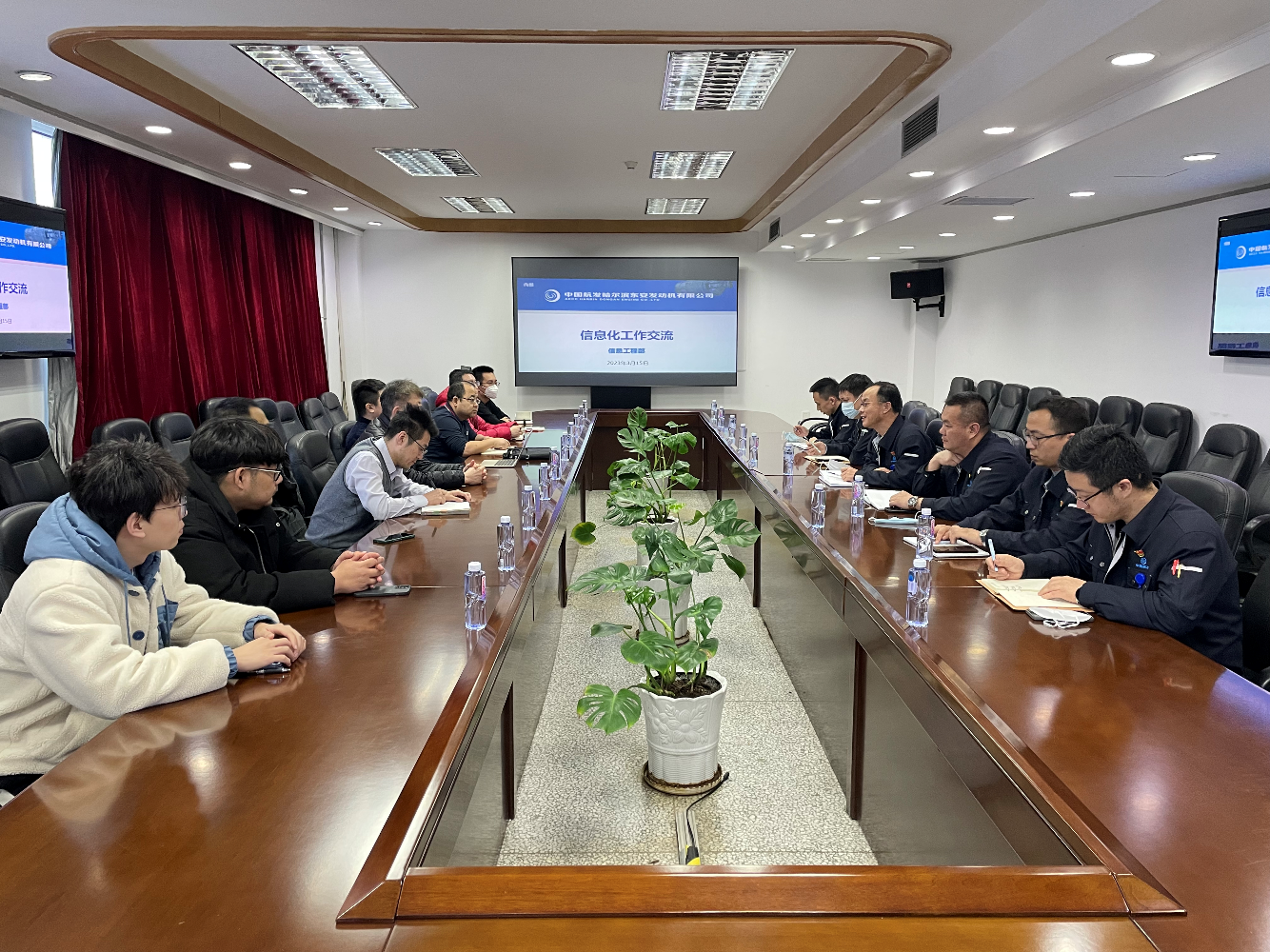 2023年3月15日下午,学院组织教师到中国航发哈尔滨东安发动机有限公司进行技术交流。学校科研院校地处贾舜哲,学院科技办陈潜心,教师潘海为、王向辉、玄世昌、吕继光、江俊慧,中国航发哈尔滨东安发动机有限公司信息工程部部长任建伟、书记黄帅、副部长袁强庆和相关科室科长唐立民、王学峰、梁英飞参加了此次交流会。