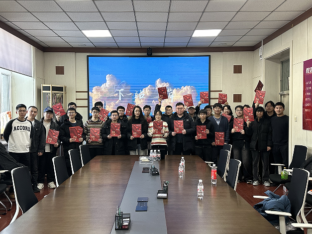 贾德帅、付强为每位学生代表颁发“成功上岸研究生录取通知书”,并合影留念,会后,为全体考研学生发放“成功上岸考研录取通知书”。接下来,学院将全力做好服务保障工作,全流程提供指导,给予学生最大的帮助和支持,为学子们考研保驾护航,高质量完成本年度升学工作。