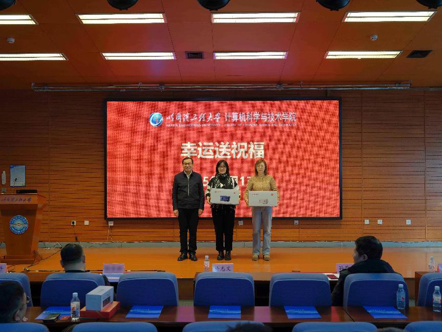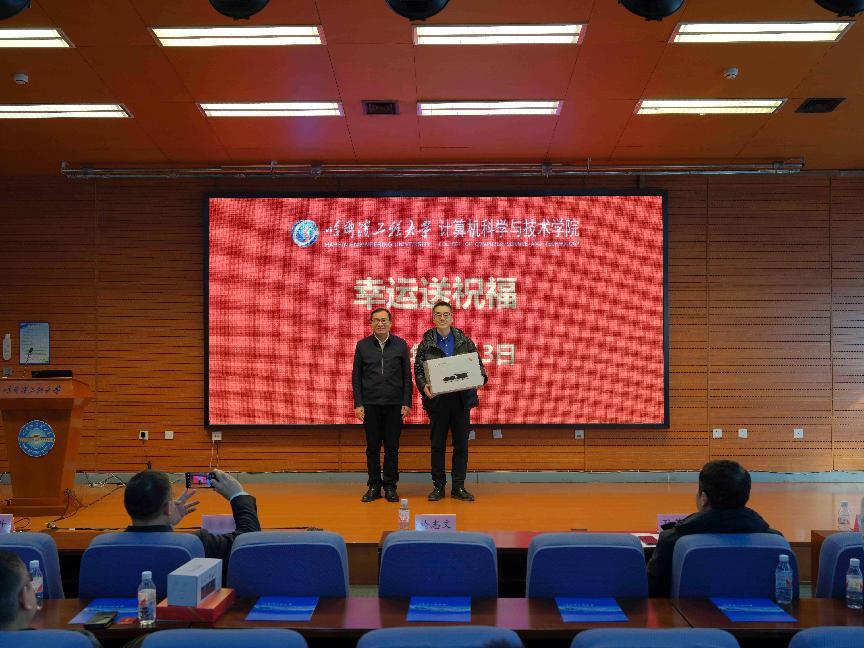随后,於志文副校长启动新春幸运送祝福环节,亲自抽取年度幸运教职工,并为幸运教师颁发纪念品。