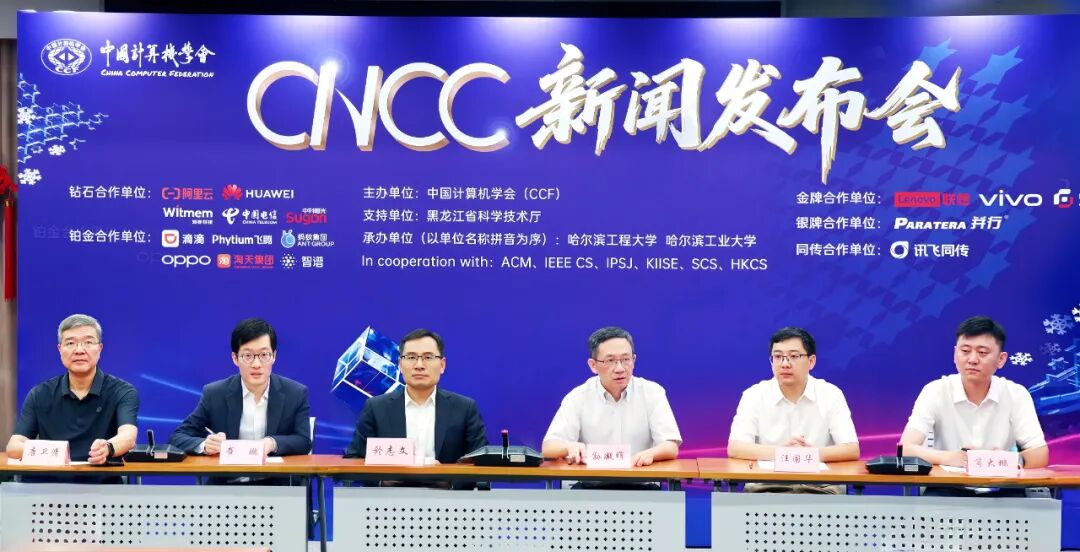 出席发布会的嘉宾包括:CNCC2025指导委员会主席、CCF理事长,中国工程院院士,中国科学院计算技术研究所研究员孙凝晖;大会指导委员会成员、组织委员会主席、CCF秘书长唐卫清;大会副主席、程序委员会主席、CCF常务理事,pg游戏电子模拟器教授於志文;大会论坛委员会主席(学术界)、CCF理事、副秘书长、青工委主任,清华大学长聘副教授崔鹏;大会承办校代表pg游戏电子模拟器教授苘大鹏;大会承办校代表哈尔滨工业大学教授汪国华。发布会由大会宣传委员会主席、CCF副秘书长王新霞主持。