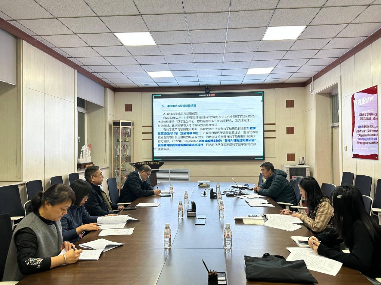 副院长王巍先介绍了课程自评估的背景意义,根据学校安排,学院已于10月底召开了课程自评估启动会,明确并布置了各阶段工作任务。随后,课程教师鞠成东从课程基本情况、建设进展、目标内容、教学设计、团队与资源建设以及育人实效等方面,详细汇报了课程自评估整体情况。