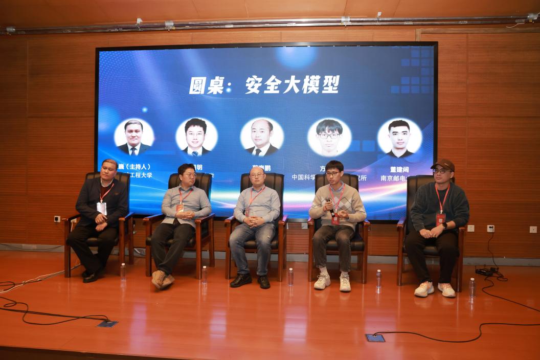 圆桌讨论环节围绕模型可信治理、模型安全评测体系、AI内容安全、数据安全等议题展开,由pg游戏电子模拟器王巍教授主持。山东大学葛春鹏教授、中国科学院信息工程研究所方栋梁副研究员、南京邮电大学董建阔副教授、南京理工大学周明博士从技术前沿、产业应用与治理体系等多个角度进行了交流,提出构建安全可控的大模型体系、完善模型安全标准、推进产学研协同创新等重要建议,为推动网络空间安全技术研究与实践提供了重要参考。